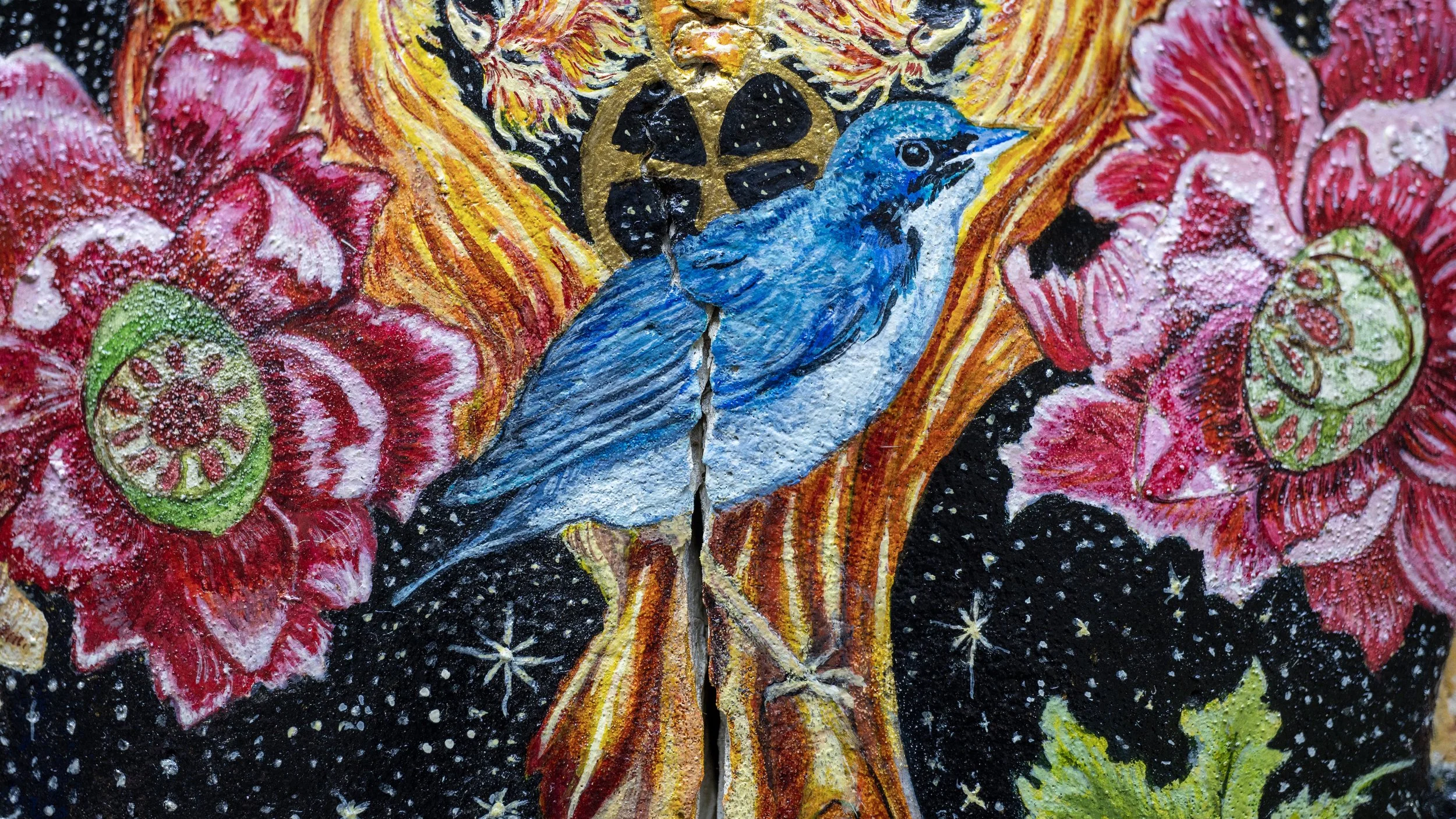 I create symbolic images and language that help orient us through life’s thresholds, descent, desire, loss, transformation, and return.